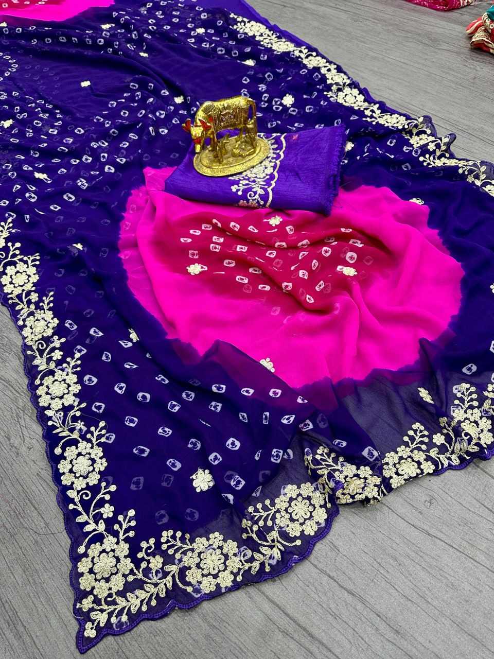| Name : | PIYU P1038 MULTI COLOR PURPLE BANDHANI Saree |