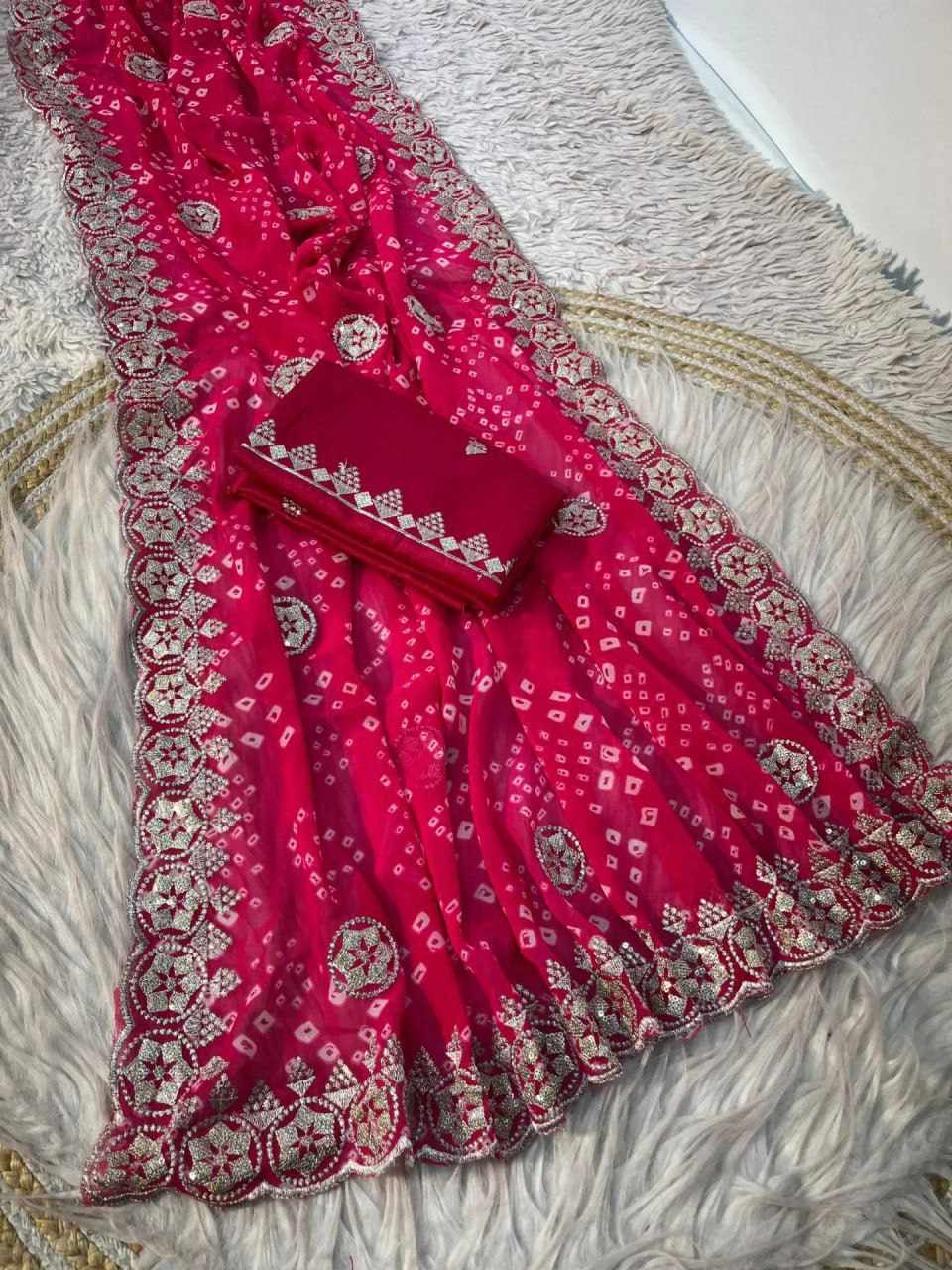 | Name : | PIYU P1032 BANDHANI Pink Saree |