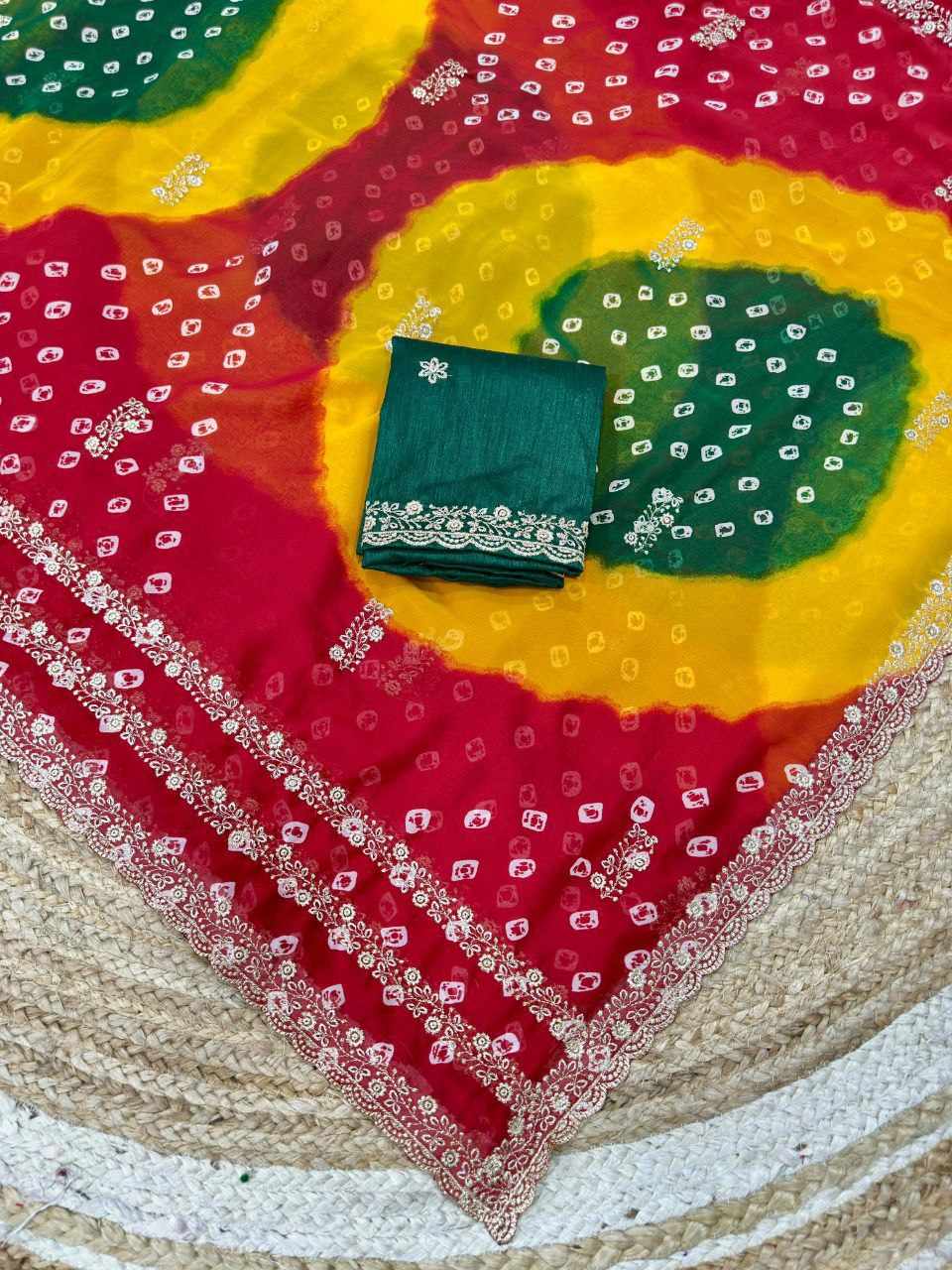 PIYU P1051 LERIYA BANDHANI-3 Red Saree