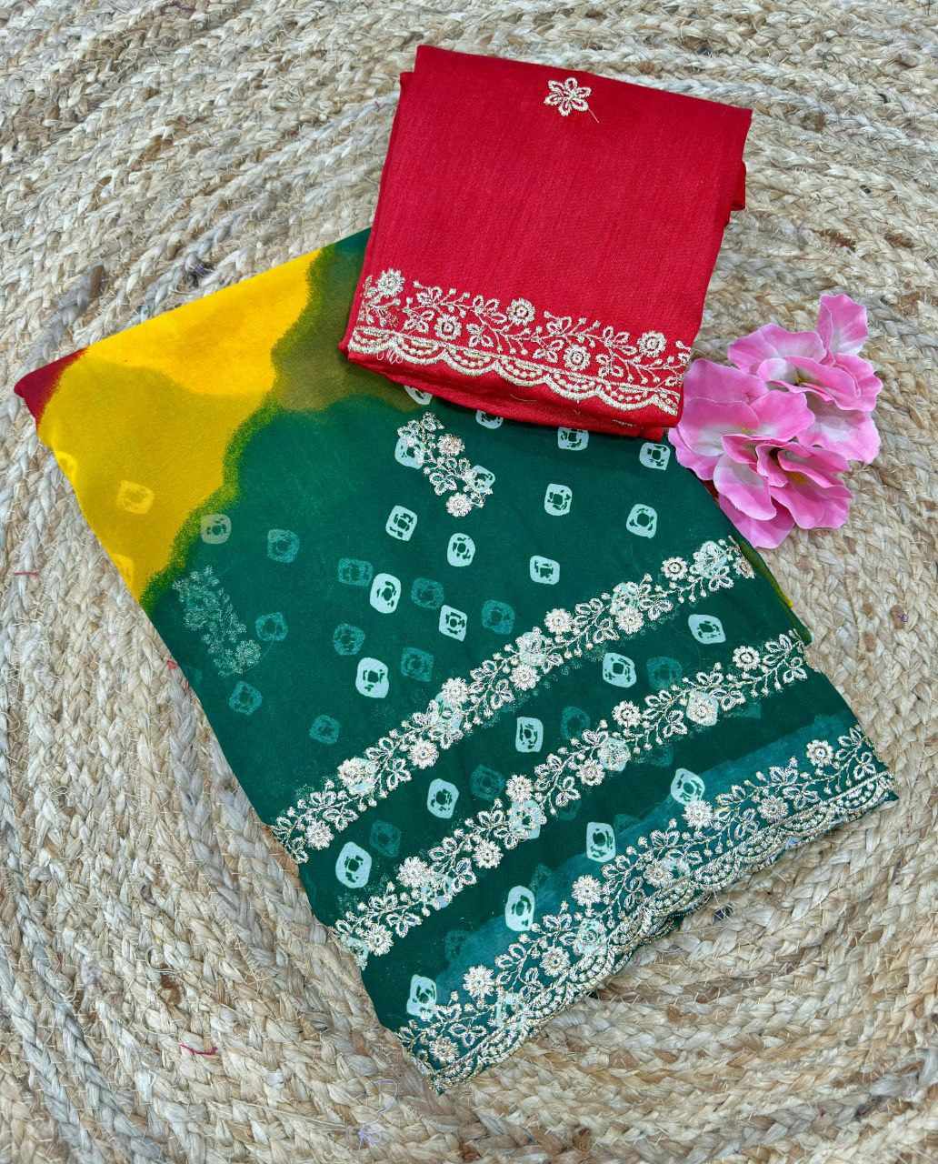 | Name : | PIYU P1051 LERIYA BANDHANI-3 Green Saree |