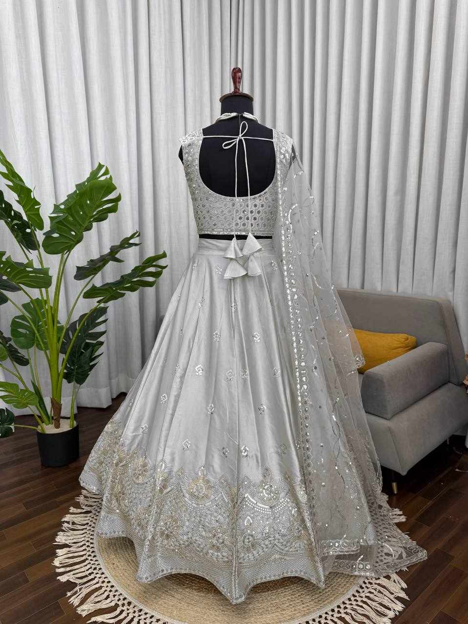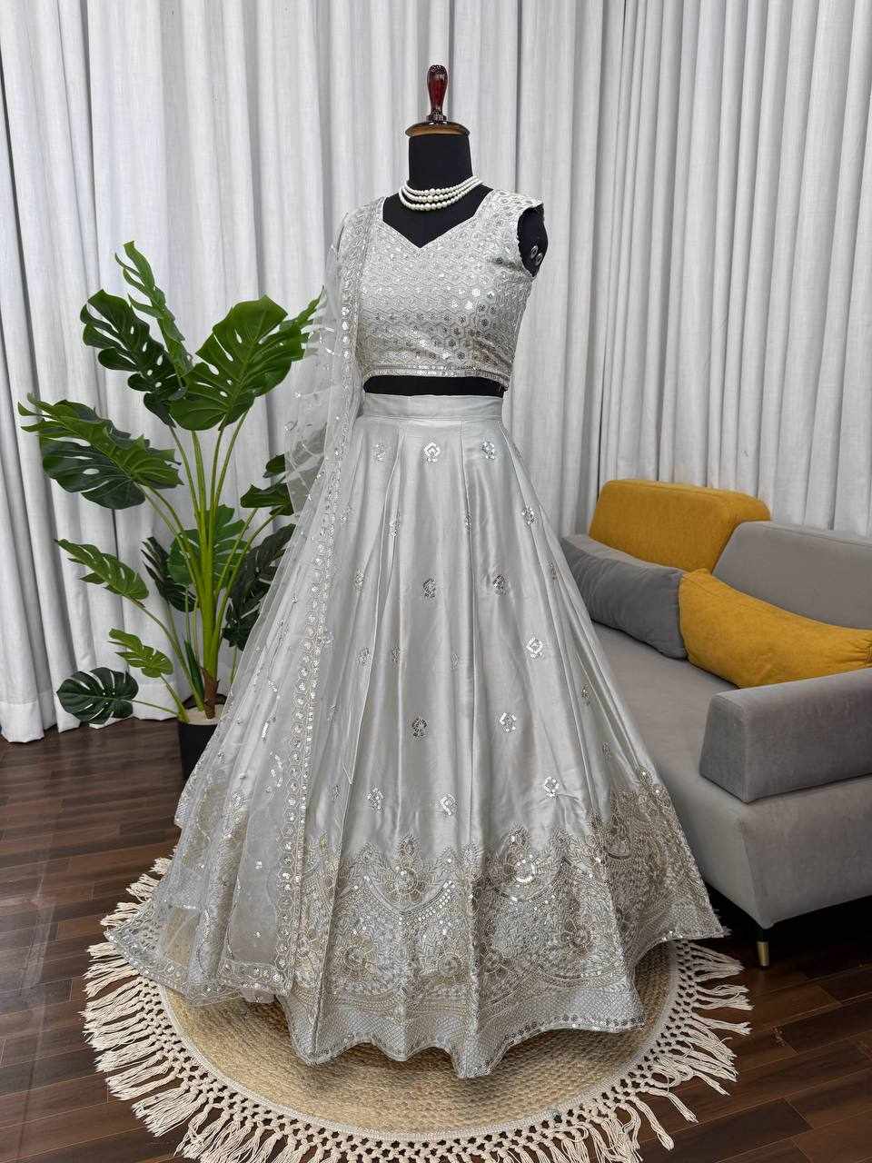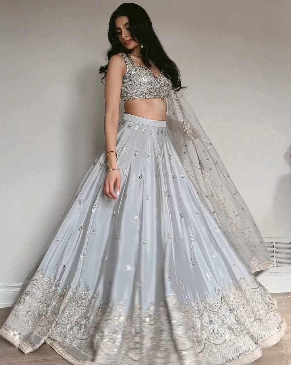 | Name : | QRC 390 Premium Designer Grey party wear Lehenga |